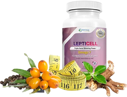 LeptiCell is a capsule supplement that combines Omega-7, plant extracts, and amino acids to reduce inflammation, control appetite, and support fat burning.